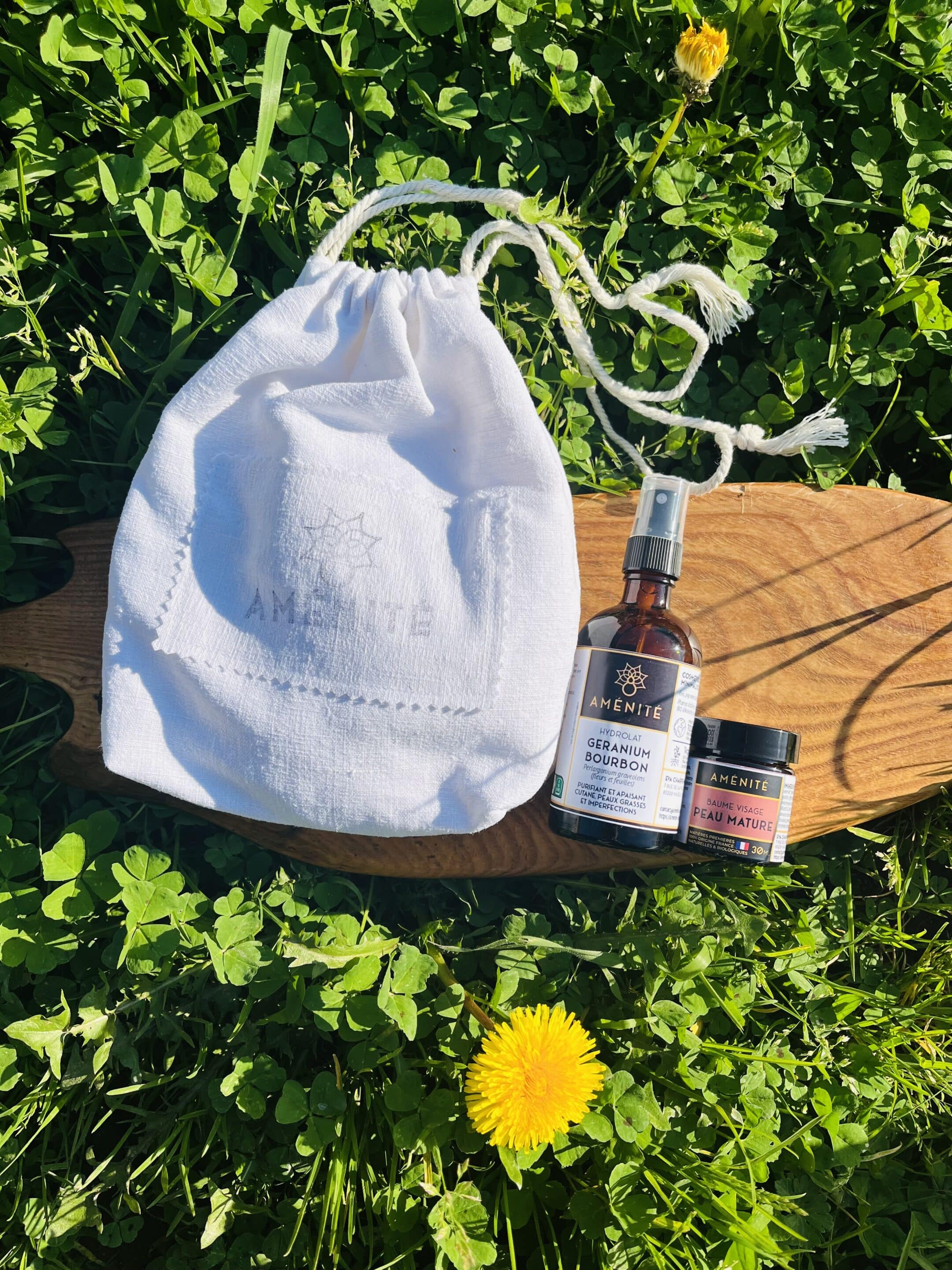 Un cadeau original et responsable, pour partir en voyage ou à suspendre dans votre salle de bain, ces pochons pourront contenir vos trésors, hydrolats 100ml, macérats huileux, lingettes démaquillantes, vos produits d’hygiène, votre maquillage, vos soins de corps, bijoux, médicaments, mots doux…