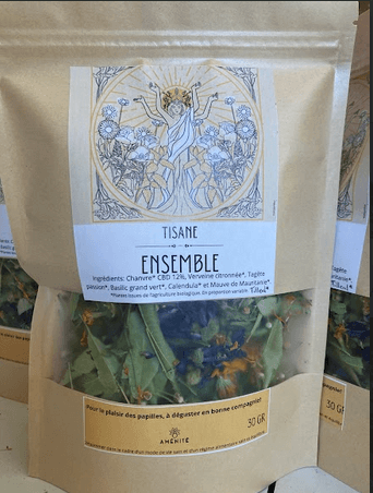 Chanvre CBD (12%), verveine citronnée, oeillet passion, basilic grand vert, mauve de Mauritanie