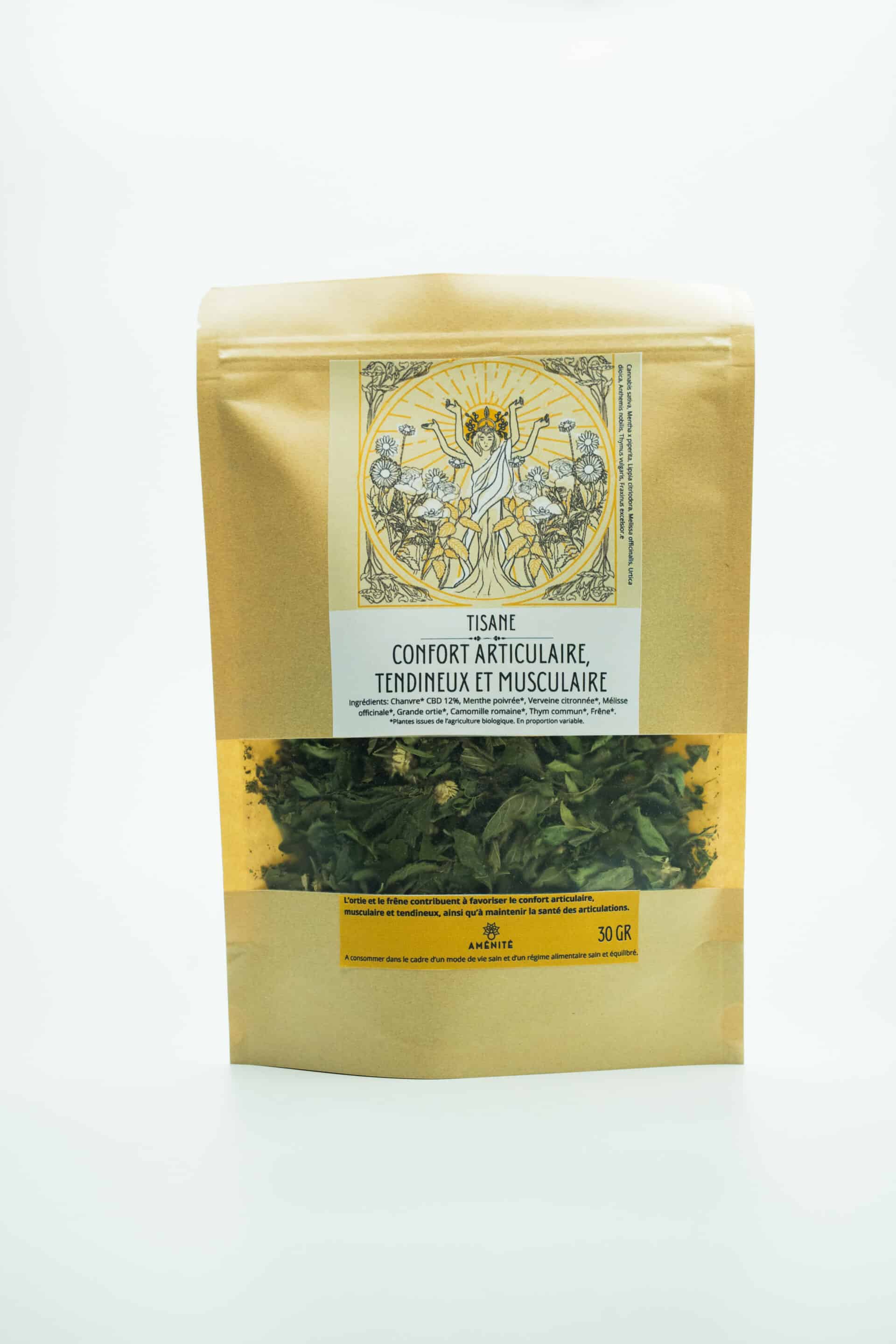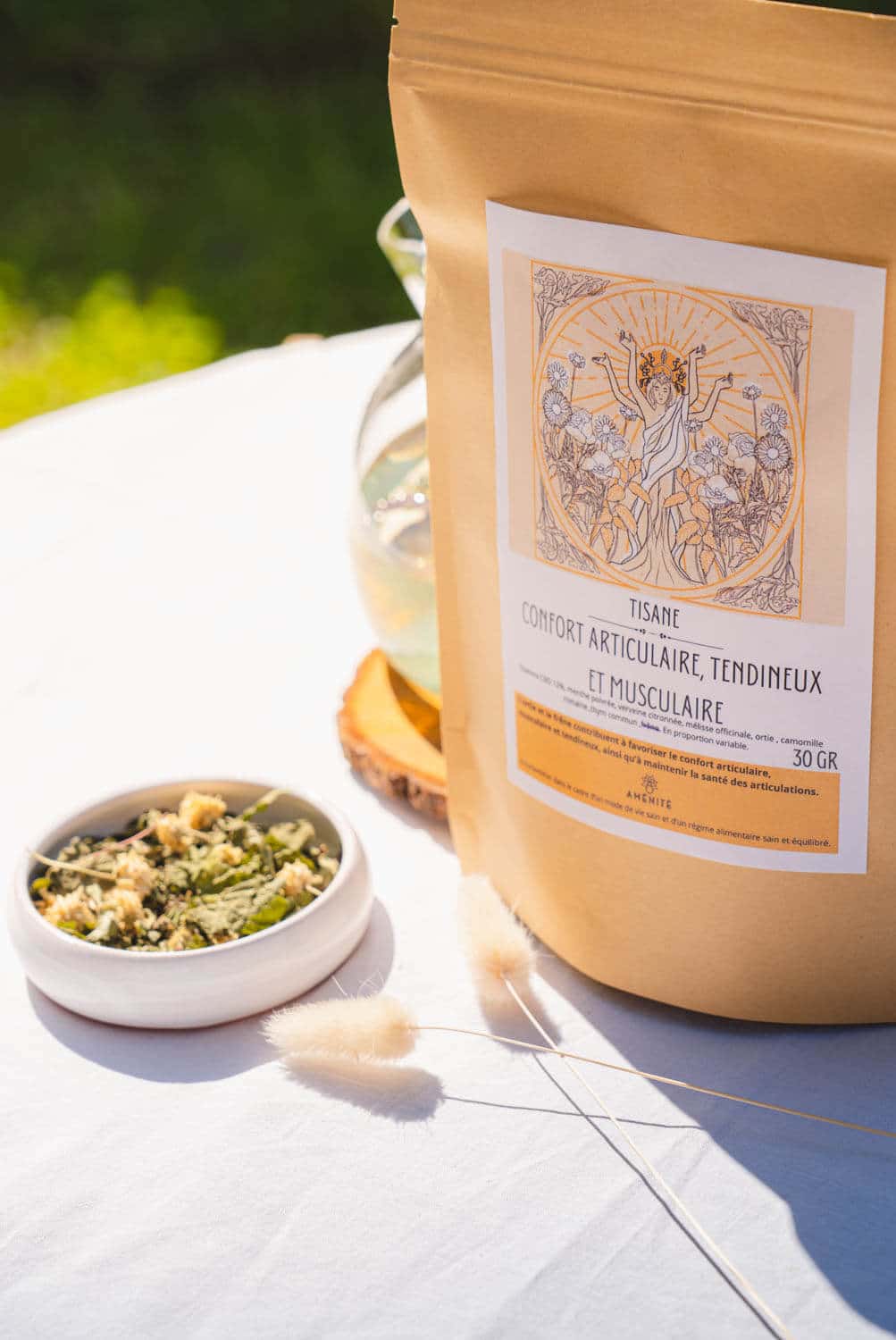 Nos tisanes sont confectionnées avec nos récoltes et cueillettes sur notre ferme bio et sur des zones naturelles préservées. Nous les séchons rapidement afin d’en préserver les arômes et leurs propriétés. Le tri, le mondage et l’assemblage des tisanes se font à la main pour garantir notre qualité artisanale. Un mélange favorisant la détente articulaire, musculaire et calmant les douleurs inflammatoires.